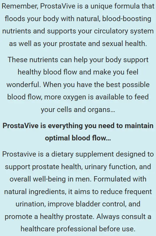 Choose your age to receive the best solution tailored to your needs. Prostavive is a natural prostate health supplement designed to support urinary function and overall well-being. Formulated with natural ingredients, it helps promote prostate wellness. Prostavive reviews highlight its effectiveness in reducing frequent urination and improving comfort. With top-rated support prostate supplements gaining popularity, Prostavive offers a reliable solution for men seeking natural prostate health support. Take advantage of the Prostavive discount available for a limited time. For the best deals and authentic products, visit the official site today and experience the benefits of Prostavive for optimal prostate health.